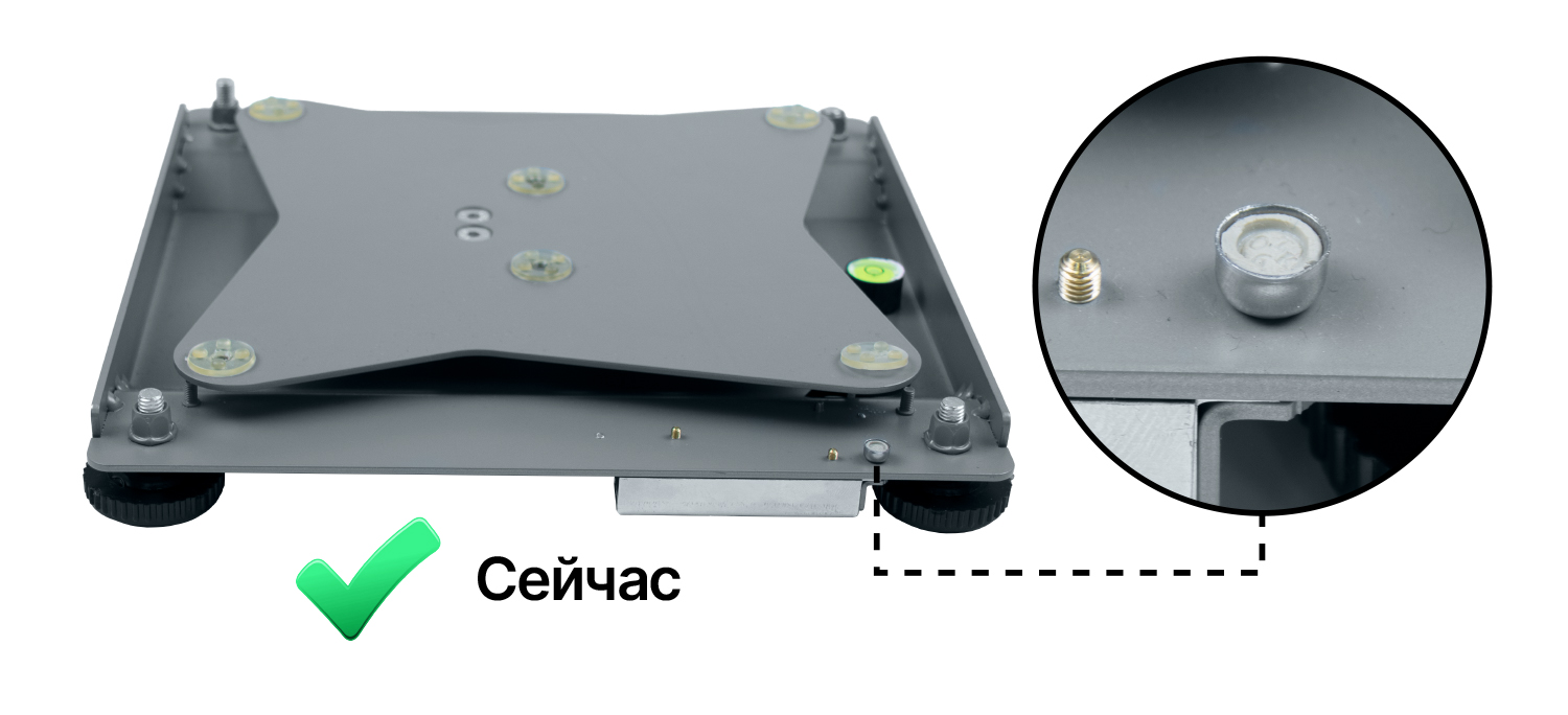 · Удобство контроля целостности пломбы весов. Пломба размещена под металлической чашей весов, тогда как ранее размещалась на дне корпуса.
