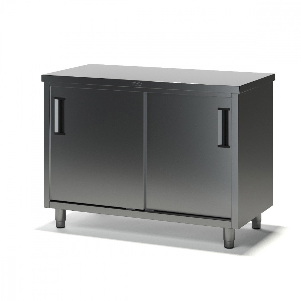 Разделочный стол-тумба из нержавеющей стали: 2 дверцы, полки, без борта.